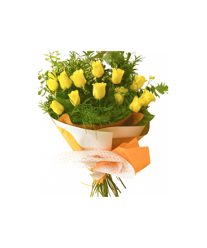12 Rosas amarillas de tallo largo, ecuatorianas. ¡Un regalo perfecto!