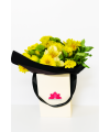 Divina caja con cinta, para llevar las flores variadas amarillas, las más lindas!